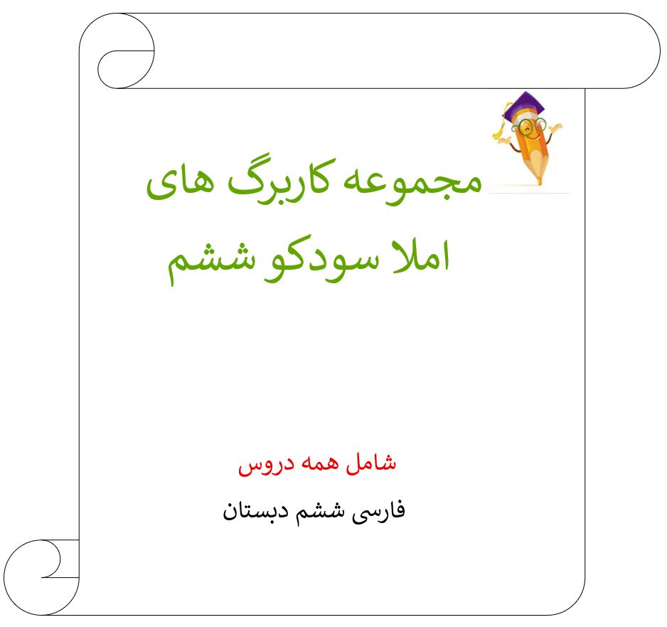 مجموعه کاربرگ املا سودکو فارسی ششم شامل کلمات مهم و سخت از نظر املایی است . این کاربرگ با تلفیق فارسی و بازی ریاضی . ضمن تمرین و تثبیت یادگیری باعث افزایش قدرت حافظه بینایی و توجه و تمرکز می شود .